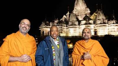 न्यूयॉर्क के मेयर एरिक एडम्स ने की अक्षरधाम मंदिर की यात्रा, प्रमुख स्वामी महाराज से की मुलाकात