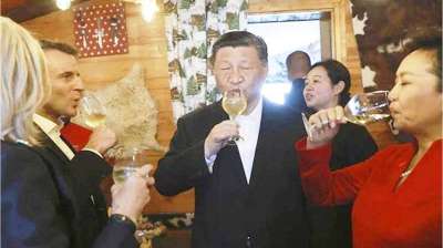 फ्रांस के राष्ट्रपति मैक्रों ने बर्फीले पर्वतीय दर्रे में की जिनपिंग से मुलाकात, लगाए जाम