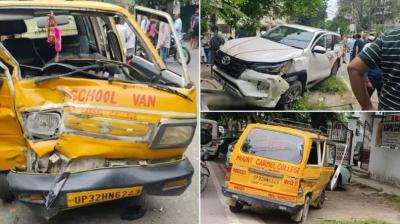 लखनऊ में सुबह का बड़ा हादसा: तेज रफ्तार SUV ने स्कूली वैन को मारी टक्कर, कई बच्चे घायल