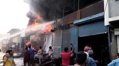 इंदौर मेें कूलर गोदाम मेें आग लगी, फायर ब्रिगेड के आने से पहले लोगों ने बुझा दी आग