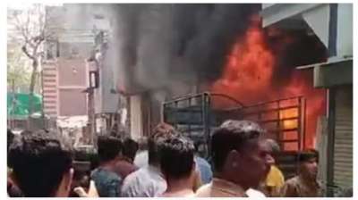 इंदौर के ट्रांसपोर्ट नगर में टायर की दुकान में भीषण आग, इलाके में धुएं का गुबार