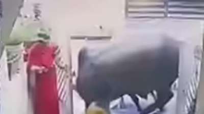 बेकाबू सांड़ों की कुश्ती से मचा हड़कंप, घर का गेट तोड़ा, महिलाएं आईं चपेट में