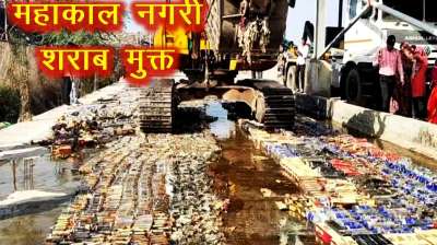 शराबबंदी को लेकर उज्जैन में हुई बुलडोजर कार्रवाई, लगभग 50 लाख रुपए की शराब की गई नष्ट
