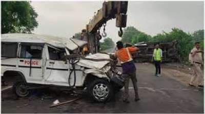 नीमच में तेज रफ्तार ट्रक ने पुलिस वाहन और पिकअप को मारी टक्कर, पुलिस के चालक समेत तीन की मौत, छह घायल