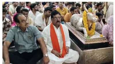 मंगल की कामना को लेकर मंगलनाथ पहुंचे उपमुख्यमंत्री राजेंद्र शुक्ला, पत्नी के साथ चढ़ाया भात
