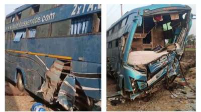 मतदान सामग्री जमा करवाकर लौट रही कर्मचारियों की बस ट्रक में घुसी, एक होमगार्ड जवान की मौत, 9 घायल