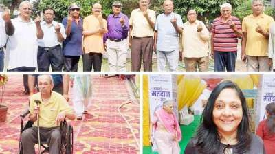 मतदान के लिए सात समंदर पार से आई इंदौरी महिला, व्हीलचेयर पर वोट डालने पहुंचे बुजुर्ग