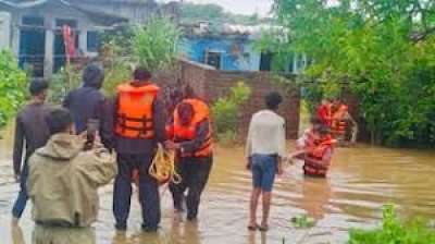 ग्वालियर जिले में एसडीआरएफ़ की टीम ने पुलिस व प्रशासन के सहयोग से बाढ़ में फंसे लोगों को सुरक्षित निकाला