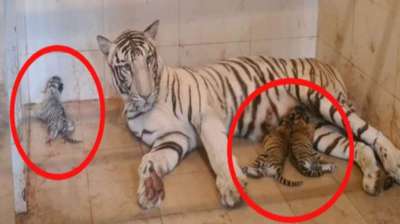 ग्वालियर के चिड़ियाघर मे बाघिन दुर्गा ने तीन शावकों को जन्म दिया