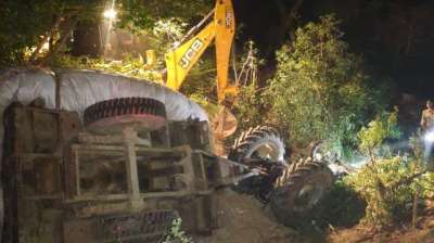 ट्रैक्टर-ट्रॉली पलटने से भूसा व्यापारी की मौत, एक घायल