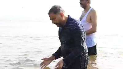 डीजीपी प्रशांत कुमार ने संगम में डुबकी लगा कर की सुरक्षा तैयारियों की समीक्षा