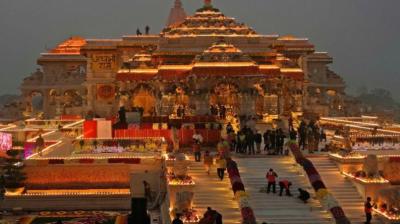 अयोध्या में श्रीराम जन्मभूमि पर निर्माण कार्य सम्पन्न, मंदिर परिसर सजा भव्य रूप में