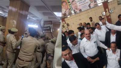 गाजियाबाद के जिला न्यायालय में वकील और पुलिसवालों के बीच झड़प