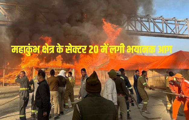 महाकुंभ मेला क्षेत्र में रविवार को भीषण आग लग गई। बताया जा रहा है कि टेंट में खाना बनाते समय आग लगी होगी, जिसकी आधिकारिक पुष्टि नहीं की जा सकी है। इस आग की चपेट में आस-पास के अन्य टेंट भी आ गए। इस आग के कारण गैस सिलेंडर में ब्लास्ट होने की बात कही जा रही है। आग की चपेट में आने के कारण 20 से 25 टेंट जल गए। बताया जा रहा है कि सर्वप्रथम आग अखाड़े से आगे वाली सड़क पर लोहे के ब्रिज के नीचे लगी। सूचना मिलते ही फायर बिग्रेड की गाड़ियां मौके पर पहुंचीं और इलाके को सील कर आग को काबू करने की भरसक कोशिश की गई। हवा तेज होने के कारण आग फैली लेकिन समय रहते आग पर काबू पा लिया गया। आग के कारण महाकुंभ में कई टेंट जल गए, जिससे अफरा-तफरी का माहौल बन गया। आग लगने से टेंट में रखा सामान भी जलकर राख हो गया। इस घटना में फिलहाल किसी जनहानि की कोई खबर नहीं है। आग इतनी भीषण थी कि महाकुंभ मेले क्षेत्र वाले आसमान में काला धुआं छा गया। सोशल मीडिया पर आग भड़कने का वीडिया वायरल हुआ है।