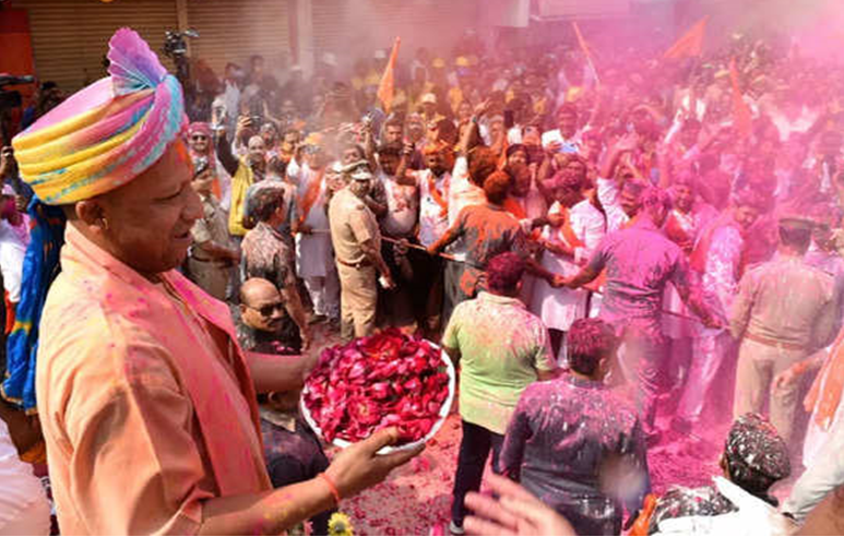 मुख्यमंत्री योगी आदित्यनाथ ने गोरखनाथ मंदिर में मनाई होली, कहा.......
