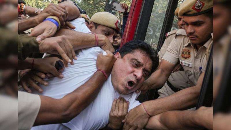 अंदर प्रवेश करने के बाद उन्होंने नारे छपे टी-शर्ट के ऊपर पहनी हुई कमीजें उतार दीं। उनकी टी-शर्ट पर पीएम इज कॉम्प्रोमाइज्ड, भारत-अमेरिका व्यापार समझौता और एप्स्टीन फाइल्स लिखा था। सूत्रों ने दावा किया कि प्रदर्शनकारियों ने ड्यूटी पर तैनात कुछ पुलिस अधिकारियों के साथ मारपीट भी की और पूरे मामले की जांच की जा रही है। जांचकर्ता विरोध-प्रदर्शन के पीछे के वित्तीय लेन-देन की भी जांच कर रहे हैं।