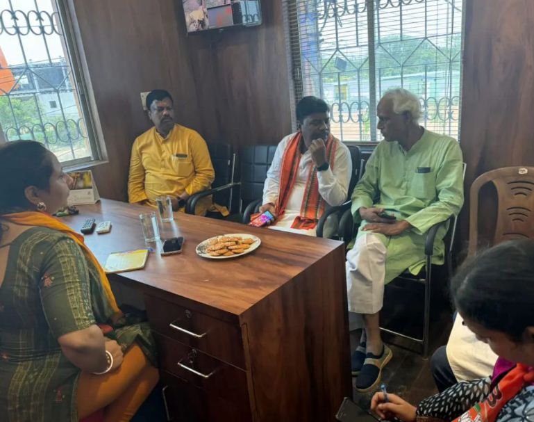रायपुर। उड़ीसा के झारसुगुड़ा में वनमंत्री केदार कश्यप एवं आदिवासी नेता एवं अनुसूचित जनजाति मोर्चा के प्रदेश अध्यक्ष विकास मरकाम ने भारतीय जनता पार्टी जिला चुनाव कार्यालय में जिलाध्यक्ष एवं अन्य पदाधिकारियों के साथ बैठक कर चुनाव रणनीतियों पर चर्चा की। वनमंत्री केदार कश्यप ने कहा कि प्रधानमंत्री नरेंद्र मोदी की गारंटी और संकल्पपत्र के एक एक बिंदु को हमे जन जन और घर घर तक पहुंचाना है, साथ ही केंद्र सरकार के पिछले 10 वर्षों के कार्यों को हर सभा सम्मेलन में आम जनों तक पहुंचाना होगा। पीएम आवास हो, नलजल योजना, पीएम किसान सम्मान निधि, महिलाओं के सम्मान के लिए शौचालयों का निर्माण हो इन सभी योजनाओं का खूब प्रचार प्रसार करने की बात कही। साथ ही उन्होंने पुरजोर तरीके से अबकी बार 400 पार के नारे को उठाने की बात की।
